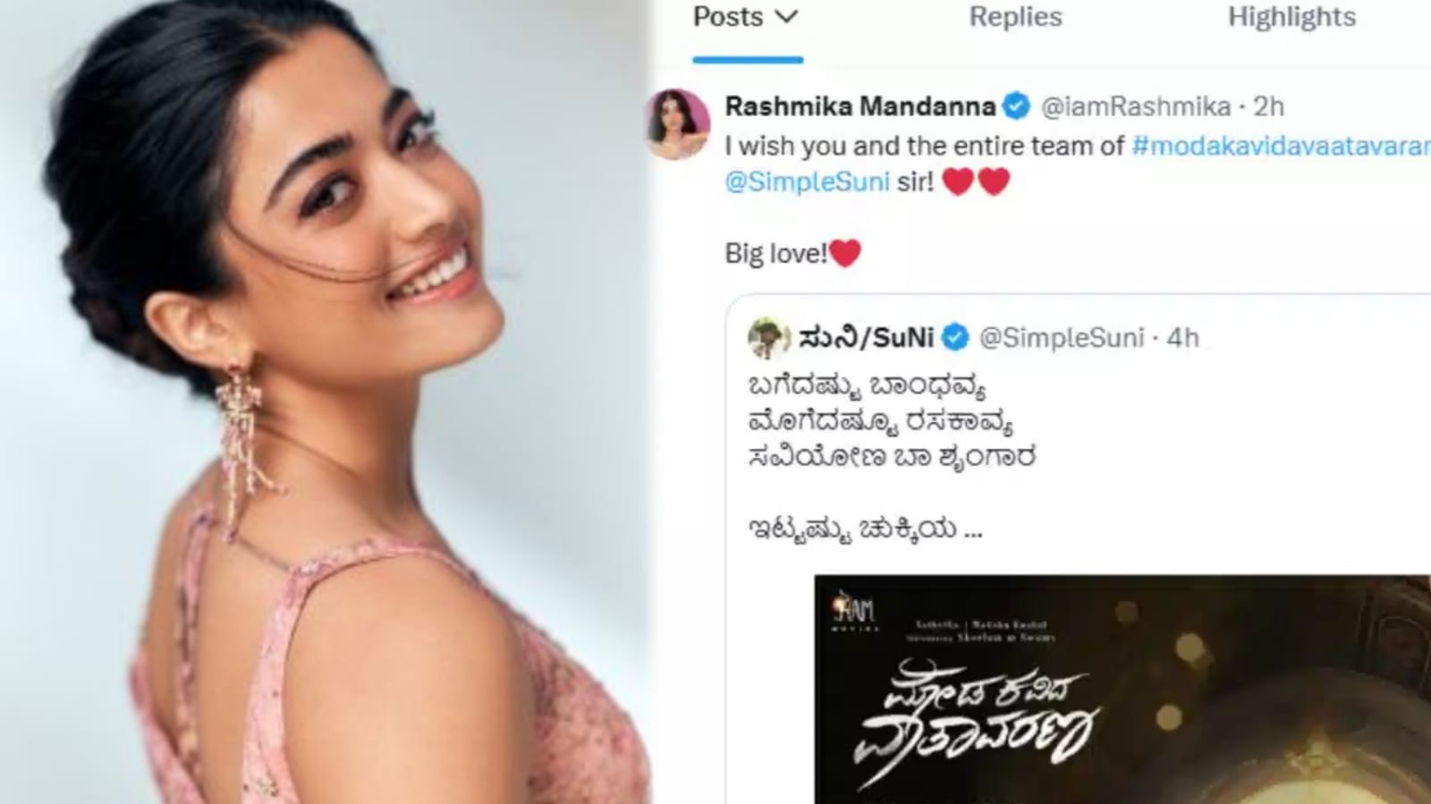 ನ್ಯಾಶನಲ್ ಕ್ರಶ್ ರಶ್ಮಿಕಾ ಮಂದಣ್ಣ ಈಗ ಬಾಲಿವುಡ್ ಸ್ಟಾರ್ ಹೀರೋಯಿನ್. ತಮ್ಮ ಮದುವೆ ಬಳಿಕ ಬ್ರೇಕ್ ಪಡೆಯದೇ ಸಾಲು ಸಾಲು ಸಿನಿಮಾಗಳಲ್ಲಿ ಬ್ಯುಸಿಯಾಗಿರುವ ನಟಿ ರಶ್ಮಿಕಾ ದಿಢೀರನೆ ಕನ್ನಡ ಸಿನಿಮಾವೊಂದಕ್ಕೆ ಶುಭ ಕೋರಿ ಪೋಸ್ಟ್