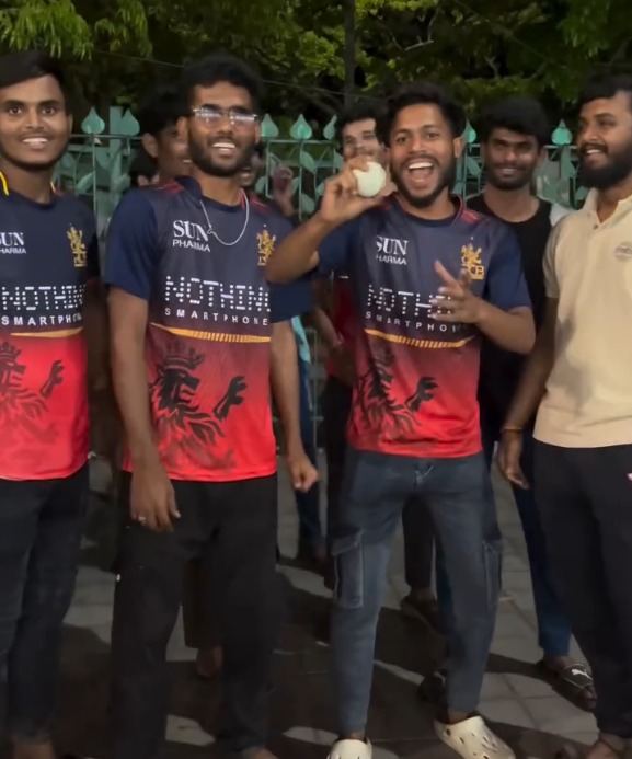 ಪ್ರತಿ ಸಲ RCB ಮ್ಯಾಚ್ ಇದ್ದಾಗ ಸಾವಿರಾರು ಜನಕ್ಕೆ ಟಿಕೆಟ್ ಸಿಗಲ್ಲ. ನಿನ್ನೆ ಕೂಡ ಒಂದಷ್ಟು ಹುಡುಗರ ಗುಂಪು ಟಿಕೆಟ್ ಸಿಗದೆ ಮೈದಾನದ ಹೊರಗಡೆ ನಿಂತು ಮೊಬೈಲ್ನಲ್ಲಿ ಸ್ಕೋರ್ ನೋಡ್ತಾ ಅಬ್ಬರ ಕೇಳಿಸಿಕೊಂಡು ಎಂಜಾಯ್ ಮಾಡ್ತಿದ್ರು. ಸ್ಟೇಡಿಯಂ ಒಳಗಡೆ ಹೋಗೋಕೆ ಆಗ್ಲಿಲ್ಲ ಅಂತ ಅವರಿಗೆ ಸಣ್ಣ ಬೇಸರ ಇತ್ತು. ಪಂದ್ಯದ ಕೊನೆಯ ಓವರ್ಗಳಲ್ಲಿ ಟಿಮ್ ಡೇವಿಡ್ ಬ್ಯಾಟ್ ಬೀಸಿದ ಬಾಲ್ ಸ್ಟೇಡಿಯಂ ದಾಟಿ ನೇರವಾಗಿ ರಸ್ತೆಗೆ ಬಂತು. ಸರಿಯಾಗಿ ಆ ರಸ್ತೆಯಲ್ಲೇ ನಿಂತು ವಿಡಿಯೋ ಮಾಡ್ತಿದ್ದ ಹುಡುಗರ ಪಕ್ಕದಲ್ಲೇ ಬಾಲ್ ಬಿದ್ದಿದೆ. ತಕ್ಷಣ ಓಡಿ ಬಂದ ಆ ಯುವಕರು ಬಾಲ್ ಕೈಗೆತ್ತಿಕೊಂಡು ಕುಣಿದು ಕುಪ್ಪಳಿಸಿದ್ದಾರೆ.