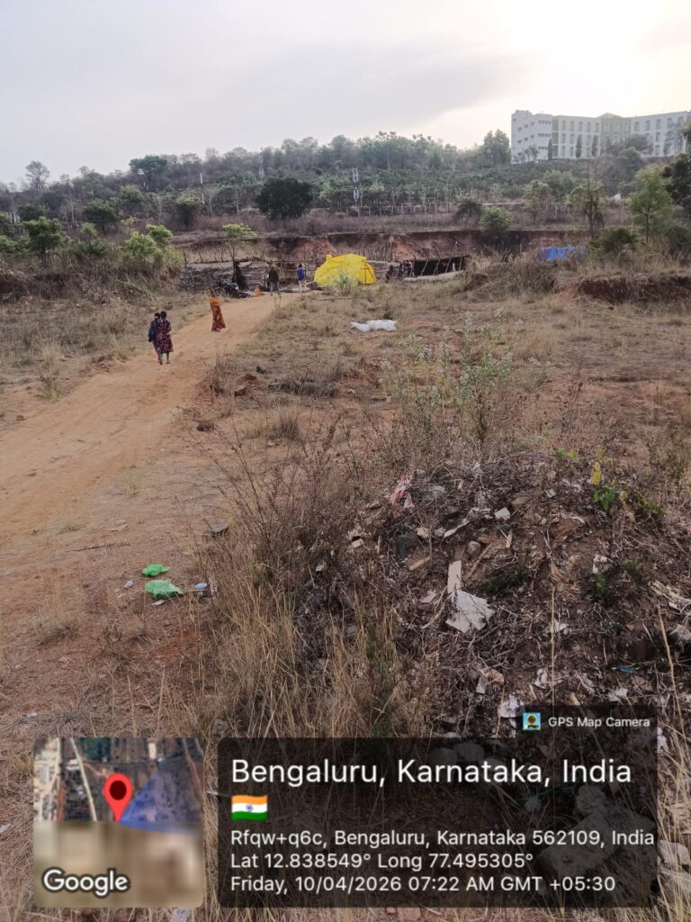 ಕಳೆದ ಏಪ್ರಿಲ್ 09, 2026ರಂದು ಆರೋಪಿಗಳು ಸಂಚು ರೂಪಿಸಿ, ಯಾವುದೇ ಹಕ್ಕುಪತ್ರ ಅಥವಾ ಅಧಿಕೃತ ದಾಖಲೆಗಳಿಲ್ಲದೆ ಈ ಜಮೀನಿಗೆ ಅಕ್ರಮವಾಗಿ ಪ್ರವೇಶಿಸಿದ್ದಾರೆ. ಸ್ಥಳದಲ್ಲಿ ತಮ್ಮ ಸ್ವಾಧೀನವನ್ನು ತೋರಿಸುವ ಉದ್ದೇಶದಿಂದ ರಾತ್ರೋರಾತ್ರಿ ಮರದ ಕಂಬಗಳನ್ನು ನೆಟ್ಟು, ಟರ್ಪಾಲ್ ಬಳಸಿ 300ಕ್ಕೂ ಹೆಚ್ಚು ತಾತ್ಕಾಲಿಕ ಶೆಡ್ಗಳನ್ನು ನಿರ್ಮಿಸಿದ್ದಾರೆ.