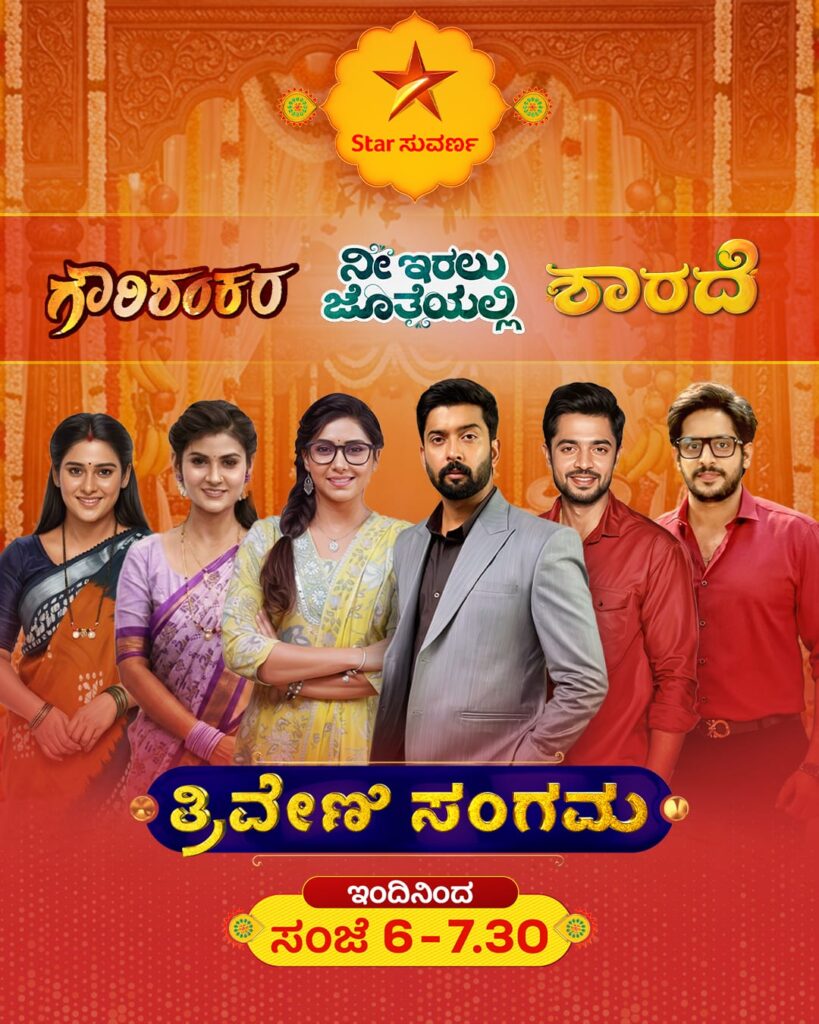 ಗೌರಿಶಂಕರ, ನೀ ಇರಲು ಜೊತೆಯಲ್ಲಿ ಹಾಗು ಶಾರದೆ “ತ್ರಿವೇಣಿ ಸಂಗಮ”.. ಇಂದಿನಿಂದ ಸಂಜೆ 6 ರಿಂದ 7.30 ರವರೆಗೆ, ನಿಮ್ಮ ಸ್ಟಾರ್ ಸುವರ್ಣ ವಾಹಿನಿಯಲ್ಲಿ ತಪ್ಪದೆ ವೀಕ್ಷಿಸಿ.