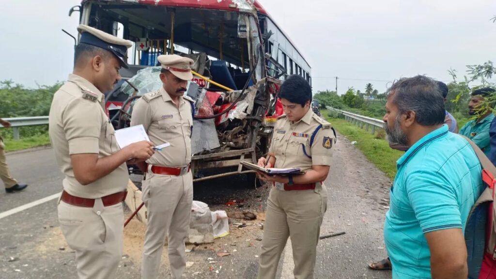 ಬಳ್ಳಾರಿ : ರಸ್ತೆ ಬದಿ ನಿಂತಿದ್ದ ಲಾರಿಗೆ KSRTC ಬಸ್ ಡಿಕ್ಕಿ ಹೊಡೆದು ಇಬ್ಬರು ಸ್ಥಳದಲ್ಲೇ ಸಾವನ್ನಪ್ಪಿರುವ ಘಟನೆ ಜಿಲ್ಲೆಯ ಸಿರುಗುಪ್ಪ ತಾಲೂಕಿನ ಬೈರಾಪುರ ಕ್ರಾಸ್ ಬಳಿ ನಡೆದಿದೆ. ಮಂಡ್ಯ ಮೂಲದ ಶ್ವೇತಾ (38), ಕನಕಪುರ ಮೂಲದ ಬಾಲನಾಯಕ (42) ಮೃತ ದುರ್ದೈವಿಗಳು. ಘಟನೆಯಲ್ಲಿ 10ಕ್ಕೂಜ ಹೆಚ್ಚು ಜನರು ಗಾಯಗೊಂಡಿದ್ದಾರೆ.