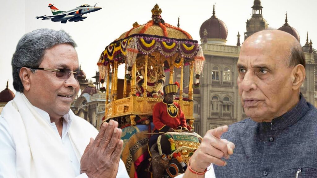ಈ ಬಾರಿಯ ದಸರಾವನ್ನು ಅದ್ಧೂರಿ ಜತೆಗೆ ಅಚ್ಚುಕಟ್ಟಾಗಿ ಜನಪರವಾಗಿ ಆಚರಣೆ ಮಾಡಬೇಕೆಂದು ಸರ್ಕಾರ ನಿರ್ಧಾರ ಮಾಡಿದೆ. ಅಲ್ಲದೆ, ದಸರಾ ಮಹೋತ್ಸವಕ್ಕೆ ಮತ್ತಷ್ಟು ಮೆರುಗು ನೀಡಲು ಸ್ವತಃ ಸಿಎಂ ಸಿದ್ದರಾಮಯ್ಯ ಅವರು ಮುಂದಾಗಿದ್ದರು. ದಸರಾದಲ್ಲಿಏರ್ ಶೋ ಪ್ರದರ್ಶನಕ್ಕೆ ಚಿಂತನೆ ನಡೆಸಿ ಕಳೆದ ತಿಂಗಳು ಹೊಸದಿಲ್ಲಿಗೆ ತೆರಳಿದ್ದ ವೇಳೆ ಕೇಂದ್ರ ರಕ್ಷಣಾ ಸಚಿವ ರಾಜನಾಥ್ ಸಿಂಗ್ ಅವರನ್ನು ಭೇಟಿ ಮಾಡಿ ಮಾತುಕತೆ ನಡೆಸಿದ್ದರು. ಆ ಮಾತುಕತೆ ಇದೀಗ ಫಲಪ್ರದವಾಗಿದ್ದು, ರಾಜ್ಯದ ಬೇಡಿಕೆಯಾದ ಏರ್ ಶೋಗೆ ಕೇಂದ್ರ ಸರ್ಕಾರ ಒಪ್ಪಿಗೆ ನೀಡಿದೆ.