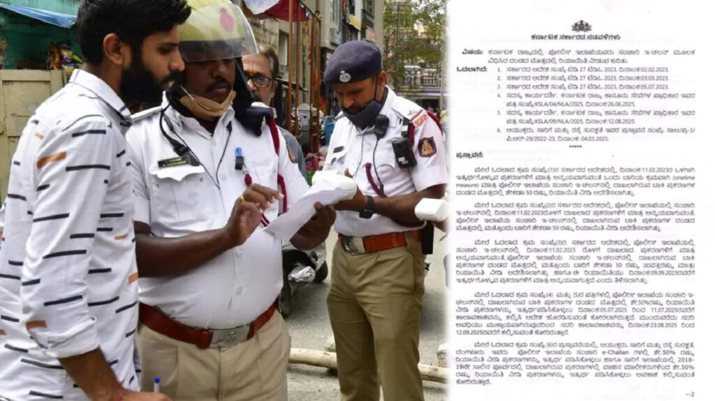 ಈ ಪ್ರಸ್ತಾವನೆಯನ್ನು ಕೂಲಂಕಷವಾಗಿ ಪರಿಶೀಲಿಸಿದ ರಾಜ್ಯ ಸರ್ಕಾರ, ಪೊಲೀಸ್ ಇಲಾಖೆಯಲ್ಲಿ ಸಂಚಾರಿ ಇ-ಚಲನ್ನಲ್ಲಿ ದಾಖಲಾದ ಪ್ರಕರಣಗಳಿಗೆ ಮಾತ್ರ ಅನ್ವಯವಾಗುವಂತೆ. ಪೊಲೀಸ್ ಇಲಾಖೆಯ ಸಂಚಾರಿ ಇ-ಚಲನ್ನಲ್ಲಿ ದಾಖಲಾಗಿರುವ ಬಾಕಿ ಪ್ರಕರಣಗಳ ದಂಡದ ಮೊತ್ತದಲ್ಲಿ ಶೇಕಡಾ 50 ರಷ್ಟು ರಿಯಾಯಿತಿ ನೀಡಿ ಆದೇಶಿಸಿದೆ.