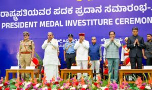 ಬೆಂಗಳೂರು : ರಾಜಭವನದ ಗಾಜಿನ ಮನೆಯಲ್ಲಿ ಇಂದು ರಾಷ್ಟ್ರಪತಿ ಪದಕ ಪ್ರದಾನ ಸಮಾರಂಭ ನಡೆದಿದೆ. ಈ ಕಾರ್ಯಕ್ರಮದಲ್ಲಿ ಅತ್ಯುತ್ತಮ ಸೇವೆ ಸಲ್ಲಿಸಿರುವ ಪೊಲೀಸರಿಗೆ ರಾಜ್ಯಪಾಲ ಥಾವರ್ ಚಂದ್ ಗೆಹ್ಲೋಟ್ ಅವರು ಪದಕ ಪ್ರದಾನ ಮಾಡಿದ್ದಾರೆ.