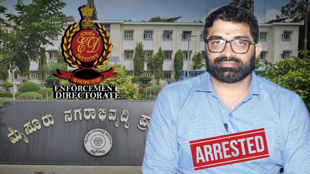 ಮೈಸೂರು : ಮೈಸೂರು ನಗರಾಭಿವೃದ್ಧಿ ಪ್ರಾಧಿಕಾರದ ಹಗರಣ (MUDA Scam) ಕೇಸ್ ಸಂಬಂಧ ಮಾಜಿ ಆಯುಕ್ತ ಜಿ.ಟಿ ದಿನೇಶ್ ಕುಮಾರ್ ಅವರನ್ನು ಜಾರಿ ನಿರ್ದೇಶನಾಲಯದ (ED) ಅಧಿಕಾರಿಗಳು ಬಂಧಿಸಿದ್ದಾರೆ.