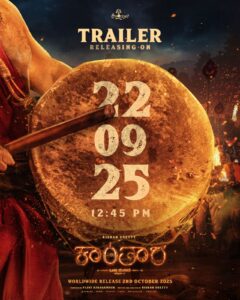 ಬಹುನಿರೀಕ್ಷಿತ ‘ಕಾಂತಾರ ಚಾಪ್ಟರ್ 1’ ಸಿನಿಮಾದ ಟ್ರೇಲರ್ ಇದೇ ಸೆಪ್ಟೆಂಬರ್ 22ರಂದು ಮಧ್ಯಾಹ್ನ 12:40ಕ್ಕೆ ಅಧಿಕೃತವಾಗಿ ಬಿಡುಗಡೆಯಾಗಲಿದೆ ಎಂದು ಹೊಂಬಾಳೆ ಫಿಲಂಸ್ ಘೋಷಿಸಿದೆ. ಈ ಚಿತ್ರವು ಅಕ್ಟೋಬರ್ 2ರಂದು ವಿಶ್ವಾದ್ಯಂತ ಅದ್ದೂರಿಯಾಗಿ ತೆರೆ ಕಾಣಲಿದೆ.
