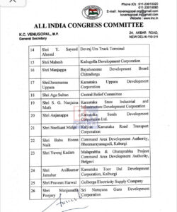 ನಿಗಮ ಮಂಡಳಿ ನೇಮಕ ಪಟ್ಟಿ