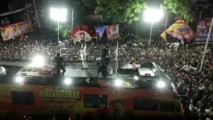 ರಸ್ತೆಯ ತುಂಬ ಸಾವಿರಾರು ಜನ ಸೇರಿದ್ದರಿಂದ ನೂಕುನುಗ್ಗಲು ಉಂಟಾಗಿದೆ. ಕರೂರಿನಲ್ಲಿ ನಡೆದ ತಮ್ಮ ರ್ಯಾಲಿಯಲ್ಲಿ ಜನರು ಪ್ರಜ್ಞೆ ತಪ್ಪಿದಾಗ “ಪೊಲೀಸರೇ, ದಯವಿಟ್ಟು ಸಹಾಯ ಮಾಡಿ” ಎಂದು ವಿಜಯ್ ಹೇಳುತ್ತಿರುವ ವಿಡಿಯೋ ಸಾಮಾಜಿಕ ಜಾಲತಾಣದಲ್ಲಿ ಹರಿದಾಡುತ್ತಿದೆ. “ಯಾರೂ ಗಾಬರಿಯಾಗಬೇಡಿ, ಈಗ ಆ್ಯಂಬುಲೆನ್ಸ್ ಬರುತ್ತದೆ” ಎಂದು ಅವರು ಮೈಕ್ನಲ್ಲಿ ಹೇಳಿದ್ದಾರೆ.
