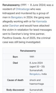 ಬೆಂಗಳೂರು : ರೇಣುಕಾಸ್ವಾಮಿ ಕೊಲೆ ಪ್ರಕರಣ ಸಾಕಷ್ಟು ಸೆನ್ಸೇಷನ್ ಸೃಷ್ಟಿ ಮಾಡಿದ್ದು, ಘಟನೆ ನಡೆದು ವರ್ಷಗಳೇ ಕಳೆದರೂ ಇದರ ಬಗ್ಗೆ ಇನ್ನೂ ಚರ್ಚೆಗಳು ನಡೆಯುತ್ತಿವೆ. ಈಗ ದರ್ಶನ್ ಕೇಸ್ ದೇಶದ ಪ್ರಮುಖ ಪ್ರಕರಣಗಳ ಪಟ್ಟಿಯಲ್ಲಿದೆ.