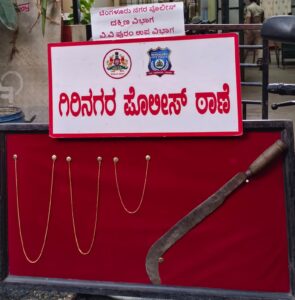 ಆರೋಪಿ ಯೋಗಾನಂದ ಮದ್ದೂರು ಬಳಿಯ ಮಾರಸಿಂಗನಹಳ್ಳಿ ನಿವಾಸಿಯಾಗಿದ್ದು, ಆತ ಗೋವಾದಿಂದ ಕುಣಿಗಲ್ ಮೂಲಕ ಮಂಡ್ಯದ ಮದ್ದೂರಿಗೆ ಬಂದಿದ್ದ. ಗೋವಾ ಮುಂಬೈ ಸುತ್ತಿ ಇದ್ದ ಹಣವೆಲ್ಲಾ ಖರ್ಚಾ ಮಾಡಿದ್ದ. ಹಣ ಖಾಲಿಯಾದ ಮೇಲೆ ವಾಪಸ್ ತವರು ಊರಿಗೆ ಬಂದಿದ್ದ. ಸದ್ಯ ಗಿರಿನಗರ ಪೊಲೀಸರು ಆರೋಪಿಗಳಿಂದ ಸುಮಾರು 74 ಗ್ರಾಂ ಚಿನ್ನಾಭರಣ, ಕೃತ್ಯಕ್ಕೆ ಬಳಸಿದ್ದ ಲಾಂಗ್ ವಶಕ್ಕೆ ಪಡೆದಿದ್ದಾರೆ.