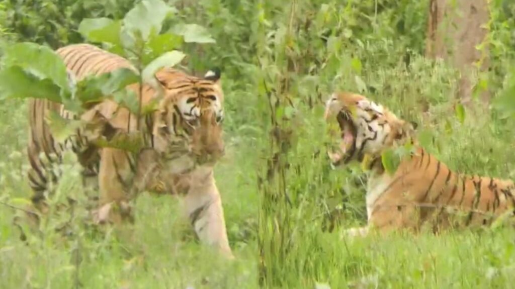ಇತ್ತೀಚೆಗೆ ಸಫಾರಿ ವೇಳೆ ಹುಲಿಗಳು ಆಗಾಗ್ಗೆ ಪ್ರವಾಸಿಗರಿಗೆ ದರ್ಶನ ನೀಡುತ್ತಿದ್ದು, ವನ್ಯಜೀವಿ ಪ್ರಿಯರಿಗೆ ಮತ್ತು ಛಾಯಾಗ್ರಾಹಕರಿಗೆ ಇದು ಸ್ವರ್ಗವಾಗಿದೆ. ಸುಮಾರು ಒಂದು ನಿಮಿಷದ ಅವಧಿಯ ಈ ವಿಡಿಯೋವನ್ನು ಹಲವು ಜನರು ತಮ್ಮ ಸಾಮಾಜಿಕ ಮಾಧ್ಯಮ ಖಾತೆಗಳಲ್ಲಿ ಹಂಚಿಕೊಂಡಿದ್ದು, ಕೆಲವೇ ಗಂಟೆಗಳಲ್ಲಿ ವಿಡಿಯೋಗೆ ಸಾವಿರಾರು ವೀಲ್ಸ್ ಬಂದಿವೆ.