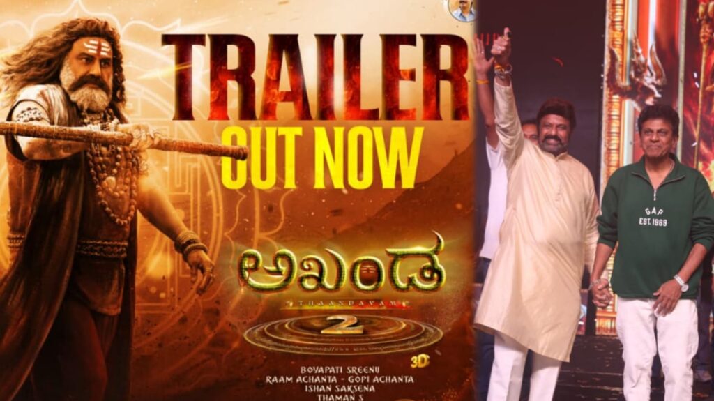 ನಂದಮೂರಿ ಬಾಲಕೃಷ್ಣ ನಟನೆಯ ಬಹುನಿರೀಕ್ಷಿತ ಸಿನಿಮಾ ಅಖಂಡ-2. ಅಖಂಡ ಚಿತ್ರದ ಮುಂದುವರಿದ ಭಾಗವಾಗಿರುವ ಅಖಂಡ ಸೀಕ್ವೆಲ್ ಟ್ರೇಲರ್ ಬಿಡುಗಡೆ ಕಾರ್ಯಕ್ರಮ ಅದ್ಧೂರಿಯಾಗಿ ನಡೆದಿದೆ. ಚಿಕ್ಕಬಳ್ಳಾಪುರದ ಚಿಂತಾಮಣಿಯ ಚಿನ್ನಸಂದ್ರ ಬಳಿ ಬೃಹತ್ ವೇದಿಕೆ ಹಾಕಿ ಟ್ರೇಲರ್ ರಿಲೀಸ್ ಮಾಡಲಾಯಿತು. ದೊಡ್ಡ ತಾರಾಬಳಗವೇ ಕಾರ್ಯಕ್ರಮದಲ್ಲಿ ಉಪಸ್ಥಿತರಿದ್ದರು. ಹ್ಯಾಟ್ರಿಕ್ ಹೀರೋ ಶಿವರಾಜ್ ಕುಮಾರ್ ವಿಶೇಷ ಅತಿಥಿಯಾಗಿ ಭಾಗಿಯಾಗಿ ಬಾಲಯ್ಯ ಚಿತ್ರಕ್ಕೆ ಶುಭ ಹಾರೈಸಿದರು. ಫೈಟ್ ಮಾಸ್ಟರ್ ರವಿವರ್ಮಾ, ಅಯ್ಯಪ್ಪ ಹಾಗೂ ಶರತ್ ಲೋಹಿತಾಶ್ವ ಸೇರಿದಂತೆ ಇಡೀ ಚಿತ್ರತಂಡ ಭಾಗಿಯಾಗಿತ್ತು.