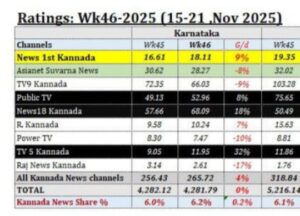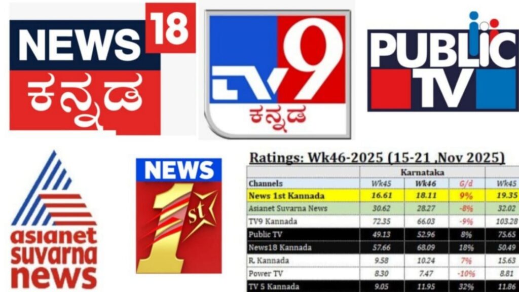 ಕರ್ನಾಟಕ ರಾಜ್ಯದ ಟಾಪ್ 5 ಚಾನಲ್ಗಳ TRP ರಿಲೀಸ್ ಆಗಿದೆ. ಈ ವಾರದ TRPಯಲ್ಲಿ News 18 ಕನ್ನಡ ಮೊದಲ ಸ್ಥಾನದಲ್ಲಿದ್ರೆ, TV-9 ಕನ್ನಡ ಸುದ್ದಿ ವಾಹಿನಿ 66.03 ರೇಟಿಂಗ್ ಪಾಯಿಂಟ್ ಪಡೆದು 2ನೇ ಸ್ಥಾನದಲ್ಲಿದೆ. ಪಬ್ಲಿಕ್ ಟಿವಿ ಚಾನೆಲ್ 52. 96 ರೇಟಿಂಗ್ನೊಂದಿಗೆ 3ನೇ ಸ್ಥಾನ ಪಡೆದಿದ್ದು, ಸುವರ್ಣ ನ್ಯೂಸ್ 28.27 ರೇಟಿಂಗ್ನೊಂದಿಗೆ 4ನೇ ಸ್ಥಾನ ಪಡೆದಿದೆ. ಇನ್ನು NEWS-1ST ಚಾನೆಲ್ 18.11 ರೇಟಿಂಗ್ ಪಾಯಿಂಟ್ ಪಡೆದು 5ನೇ ಸ್ಥಾನದಲ್ಲಿದೆ.
