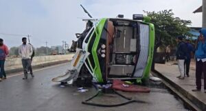 ಕೋಲಾರ : ಕೋಲಾರ ಜಿಲ್ಲೆಯ ಶ್ರೀನಿವಾಸಪುರ ತಾಲೂಕಿನ ಮಂಚಿನೀಳ್ಳಕೋಟೆ ಗ್ರಾಮದ ಬಳಿಯ ರಾಷ್ಟ್ರೀಯ ಹೆದ್ದಾರಿಯಲ್ಲಿ ನಸುಕಿನ ಜಾವ ಭೀಕರ ಬಸ್ ಅಪಘಾತ ನಡೆದಿದೆ. ಆಂಧ್ರಪ್ರದೇಶದ ಬದ್ವೆಲ್ನಿಂದ ಬೆಂಗಳೂರಿಗೆ ಹೊರಟಿದ್ದ ‘ಹರಿತ ಟ್ರಾವೆಲ್ಸ್’ಗೆ ಸೇರಿದ ಖಾಸಗಿ ಬಸ್, ಮುಂಜಾನೆ ಸುಮಾರು 3 ಗಂಟೆ ಸುಮಾರಿಗೆ ಚಾಲಕನ ನಿಯಂತ್ರಣ ತಪ್ಪಿ ರಸ್ತೆ ಡಿವೈಡರ್ಗೆ ಡಿಕ್ಕಿ ಹೊಡೆದು ಪಲ್ಟಿಯಾಗಿದೆ. ಈ ದುರ್ಘಟನೆಯಲ್ಲಿ ಓರ್ವ ಮಹಿಳಾ ಪ್ರಯಾಣಿಕಿ ಸ್ಥಳದಲ್ಲೇ ಮೃತಪಟ್ಟಿದ್ದಾರೆ ಎಂದು ಪೊಲೀಸರು ಹೇಳಿದ್ದಾರೆ.