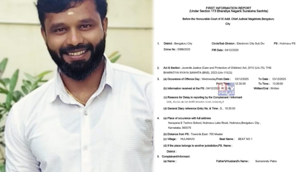 ಬೆಂಗಳೂರು : ಏಳನೇ ತರಗತಿ ಬಾಲಕನ ಮೇಲೆ ಹಲ್ಲೆ ಮಾಡಿದ ಆರೋಪದಡಿ ಬೆಂಗಳೂರಿನ ನಾರಾಯಣ ಇ-ಸ್ಕೂಲ್ನ ಪಿಟಿ ಶಿಕ್ಷಕ ರಾಜೇಶ್ ವಿರುದ್ಧ FIR ದಾಖಲಾಗಿದೆ.