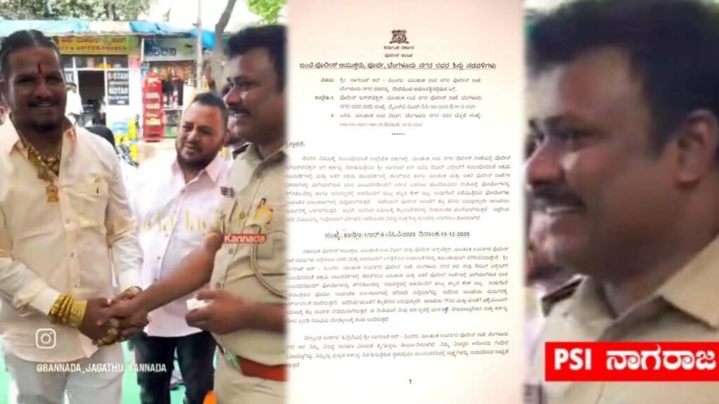 ಖಾಕಿ ಹಾಕಿದ್ಕೂಡ್ಲೇ ಜಾಕಿ ಆಗೋ PSI ನಾಗರಾಜ ಇದೀಗ ಯೂನಿಫಾರಂ ಬಿಚ್ಚಿ ಕೂತವ್ನೆ. ಬೆಂಗಳೂರು ಕಮಿಷನರ್ ಸೀಮಂತ್ ಸಾಹೇಬ್ರು PSI ನಾಗರಾಜನಿಗೆ ಸಸ್ಪೆಂಡ್ ರುಚಿ ತೋರ್ಸಿದ್ದಾರೆ. PSI ನಾಗರಾಜ ಸೋಶಿಯಲ್ ಮೀಡಿಯಾದಲ್ಲಿ ರೌಡಿಯೊಂದಿಗೆ ಜುಗಲ್ ಬಂದಿಯಾಗಿದ್ದ. ಲ್ಯಾಂಡ್ಲಿಟಿಗೇಷನ್ನು, ಕೇಸು ಕಾಸಿನಲ್ಲಿ ಕ್ಲೋಸು ಹೀಗೆ PSI ಹತ್ತಾರು ಆರೋಪ ಹೊತ್ಕಂಡಿದ್ದಾನೆ.