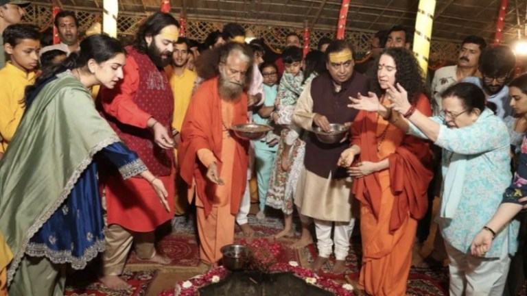 ಸಂಗಮದಲ್ಲಿ ಸ್ನಾನ ಮಾಡಿದ ಬಳಿಕ, ಅಂಬಾನಿ ಕುಟುಂಬಸ್ಥರು ನಿರಂಜನಿ ಅಖಾಡದ ಪೀಠಾಧೀಶ್ವರ ಆಚಾರ್ಯ ಮಹಾಮಂಡಲೇಶ್ವರ ಸ್ವಾಮಿ ಕೈಲಾಶಾನಂದ ಗಿರಿ ಜಿ ಮಹಾರಾಜ್ ಅವರ ಸಮ್ಮುಖದಲ್ಲಿ ಗಂಗಾ ಮಾತೆಗೆ ಪ್ರಾರ್ಥನೆ ಸಲ್ಲಿಸಿದೆ.