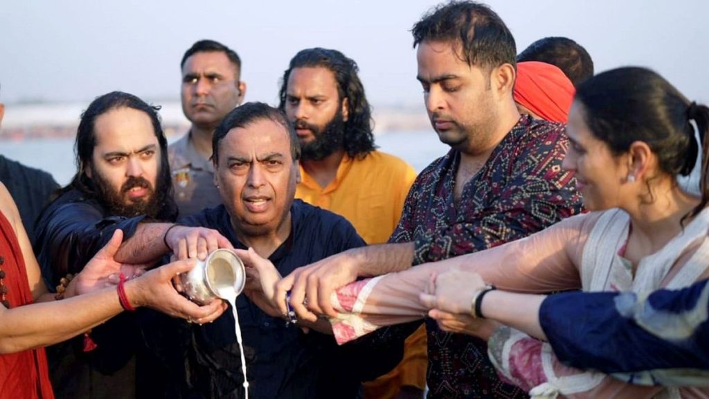 ಇನ್ನು ಮುಖೇಶ್ ಅಂಬಾನಿ ಪುತ್ರರಾದ ಅನಂತ್ ಮತ್ತು ಆಕಾಶ್ ಅಂಬಾನಿ, ಆಕಾಶ್ ಅವರ ಪತ್ನಿ ಶ್ಲೋಕಾ ಮೆಹ್ತಾ ಮತ್ತು ಅವರ ಇಬ್ಬರು ಮಕ್ಕಳಾದ ಪೃಥ್ವಿ ಮತ್ತು ವೇದಾ, ಅನಂತ್ ಅಂಬಾನಿ ಪತ್ನಿ ರಾಧಿಕಾ ಎಲ್ಲರೂ ಒಟ್ಟಾಗಿ ತ್ರಿವೇಣಿ ಸಂಗಮದಲ್ಲಿ ಪವಿತ್ರ ಸ್ನಾನ ಮಾಡಿದ್ದಾರೆ.