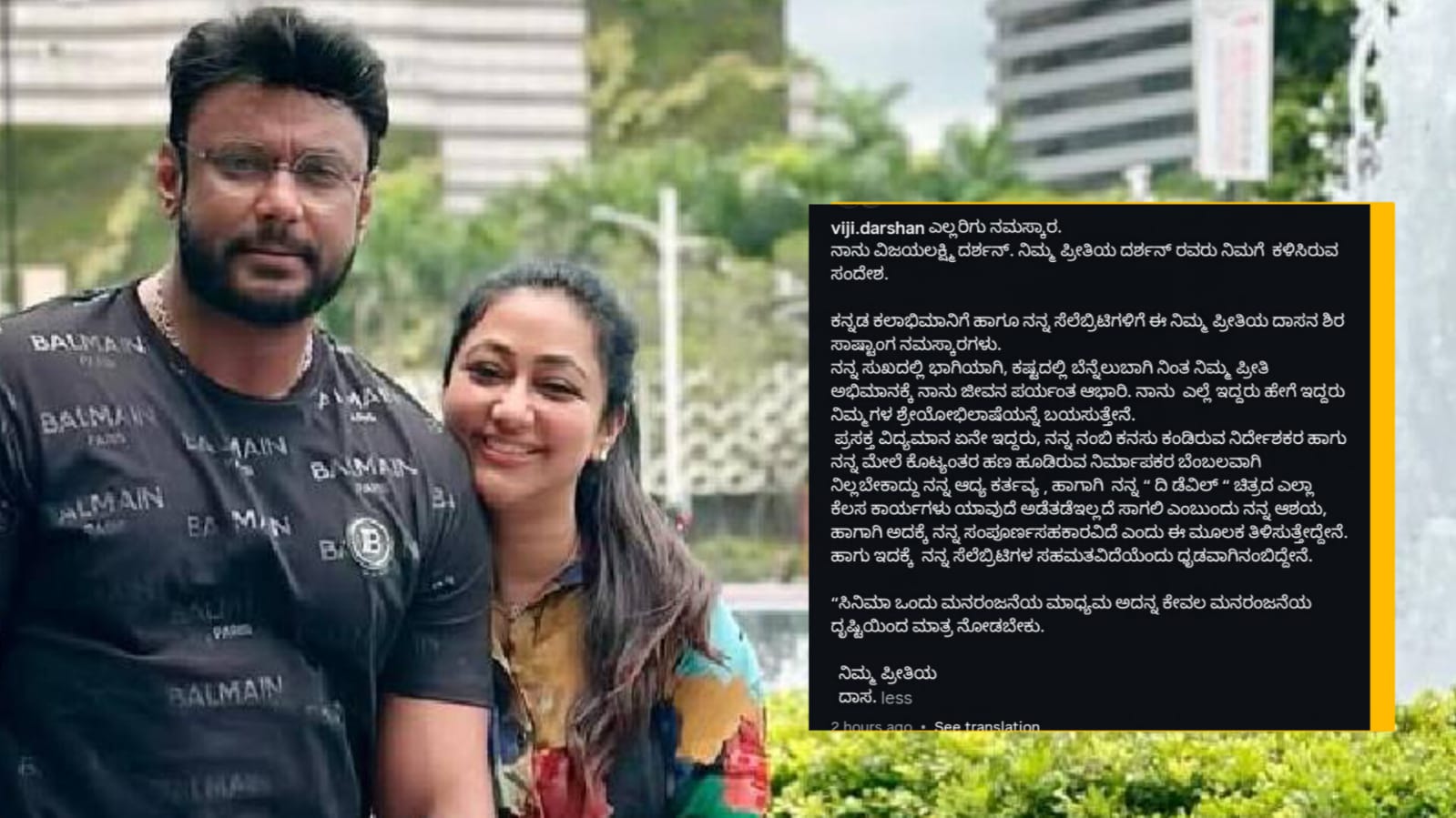 ಸೆಲೆಬ್ರೆಟಿಗಳಿಗೆ ಜೈಲಿಂದಲೇ ಸ್ಪೆಷಲ್ ಮೆಸೇಜ್ ಕಳುಹಿಸಿದ ನಟ ದರ್ಶನ್.. ಪತ್ನಿ ವಿಜಯಲಕ್ಷ್ಮಿ ಪೋಸ್ಟ್ನಲ್ಲಿ ಏನಿದೆ?