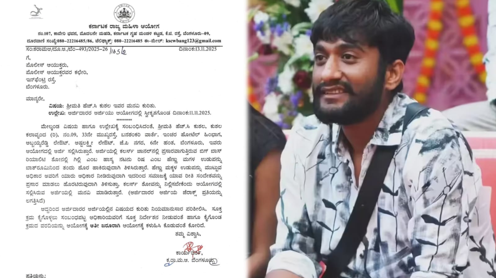 ಬಿಗ್ಬಾಸ್ ಸ್ಪರ್ಧಿ ಗಿಲ್ಲಿ ನಟಗೆ ಸಂಕಷ್ಟ – ರಿಷಾ ಬಟ್ಟೆ ಮುಟ್ಟಿದ್ದಕ್ಕೆ ಮಹಿಳಾ ಆಯೋಗಕ್ಕೆ ದೂರು.. ಕ್ರಮಕ್ಕೆ ಮನವಿ!