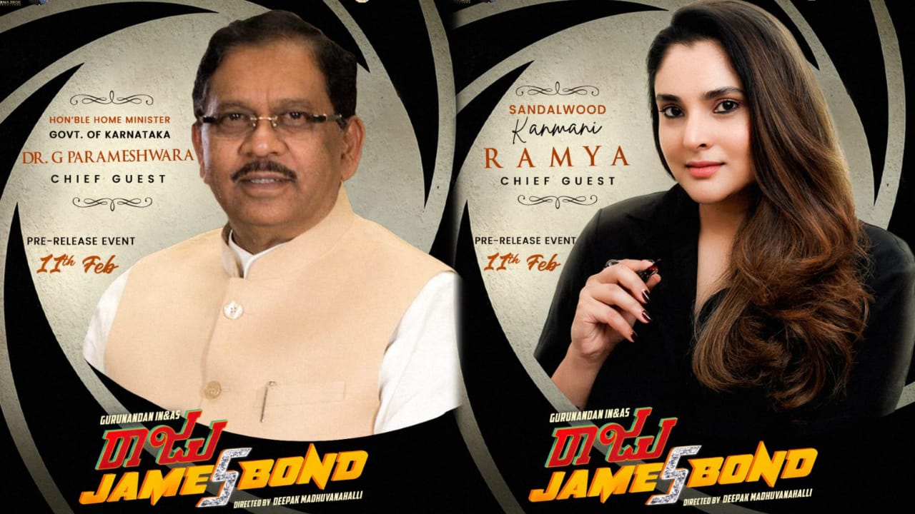 ನಾಳೆ ‘ರಾಜು ಜೇಮ್ಸ್ ಬಾಂಡ್’ ಚಿತ್ರದ ಪ್ರೀ ರಿಲೀಸ್ ಇವೆಂಟ್ – ಮುಖ್ಯ ಅತಿಥಿಗಳಾಗಿ ಗೃಹ ಸಚಿವ ಪರಮೇಶ್ವರ್, ನಟಿ ರಮ್ಯಾ ಆಗಮನ!
